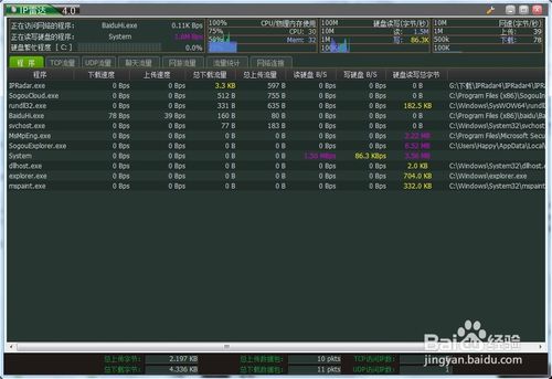 3、實(shí)時顯示每個進(jìn)程網(wǎng)絡(luò)流量和硬盤讀寫。