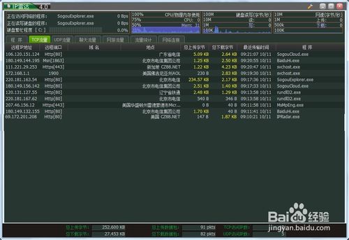 5、顯示訪問的獨(dú)立IP數(shù),發(fā)送/接收的總字節(jié)數(shù)和包數(shù)。