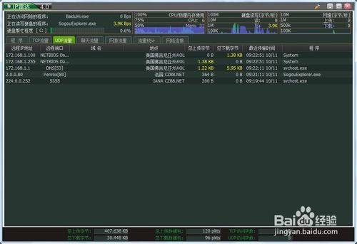 在起點(diǎn)軟件園搜索并下載“IP雷達(dá)"軟件。該軟件可實(shí)現(xiàn)包括查詢了解到你訪問過哪些網(wǎng)址、其網(wǎng)址的IP地址、地理位置和網(wǎng)站域名,以及訪問程序、訪問時間、傳輸?shù)淖止?jié)數(shù),哪些程序正在讀寫你的硬盤等。