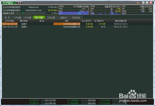 這里可以查看百度Hi或者QQ的網(wǎng)絡(luò)聊天流量。如沒有和對方聊天,那么顯示的IP地址為客戶端服務(wù)器的IP地址。