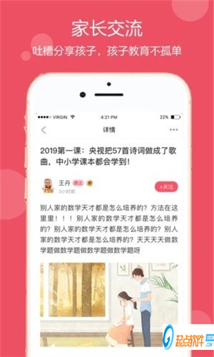 精準推薦你關(guān)注感興趣的中小學孩子學習教育領(lǐng)域內(nèi)容:升學擇校、性格心理、教育資訊、營養(yǎng)輔食、早教啟蒙、課外興趣、親子手工互動等內(nèi)容,學習交流和孩子一起成長。