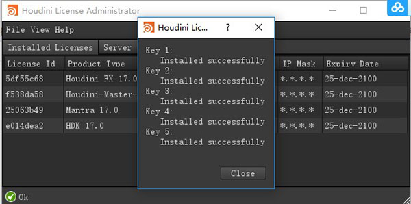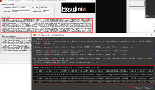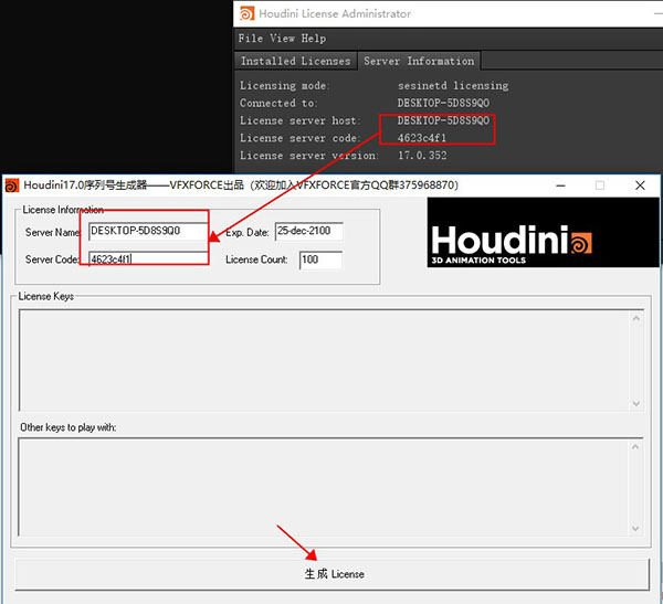 5、在Houdini License Administrator界面的Server information欄下找到License server host和License server code對應(yīng)信息;