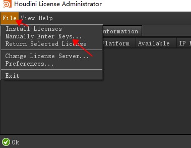 7、在Houdini License Administrator界面的菜單欄的File菜單下選Manual Enter Keys