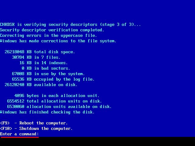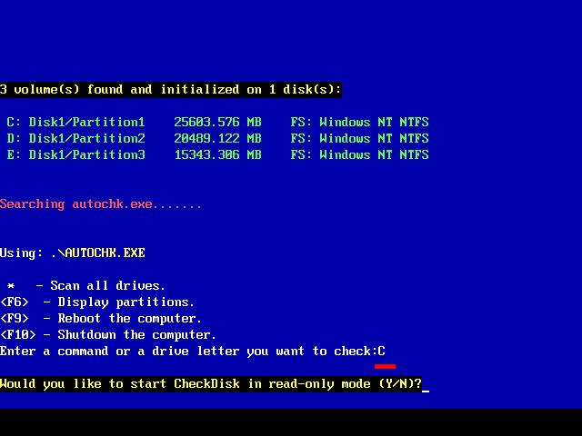 輸入 chkdsk c:/f