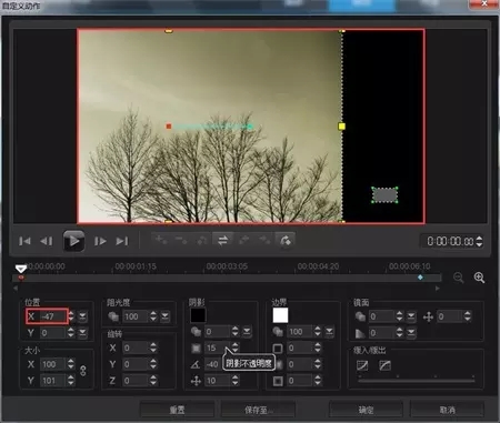 2、在彈出的自定義動(dòng)作中,看到左邊的“位置”、“大小”、“阻光度”等參數(shù)設(shè)置。