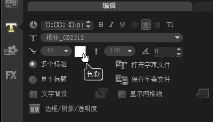 進(jìn)入“選項(xiàng)”面板,設(shè)置“字體”為開題,“字體大小”參數(shù)為40,并設(shè)置“顏色”為白色。