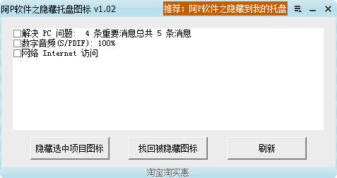 使用阿P軟件之隱藏托盤圖標可以將托盤區(qū)圖標選擇性隱藏,隱藏后的部分圖標可以統(tǒng)一恢復。
