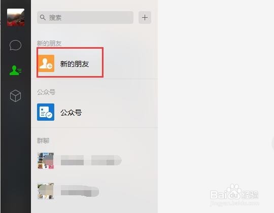 在微信電腦版的通訊錄中我們可以看到群聊和好友,當(dāng)然了加好友新的朋友得圖標(biāo)也在上面,點(diǎn)擊一下加新的朋友。然后就沒(méi)有然后了,右側(cè)不顯示任何內(nèi)容,說(shuō)明我們不能通過(guò)搜索的方式加好友。