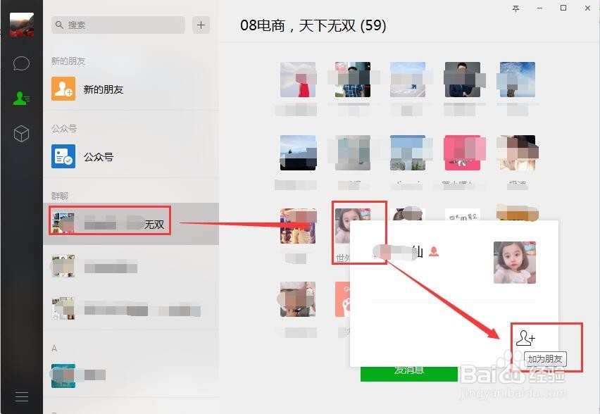 但是我們可以加下方群聊中的陌生好友,點(diǎn)擊群聊中的一個(gè)好友。