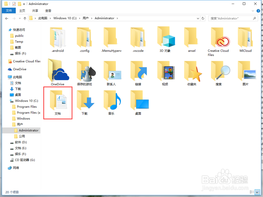 【Administrator】文件夾中,找到【文檔】文件夾,雙擊打開(kāi)。
