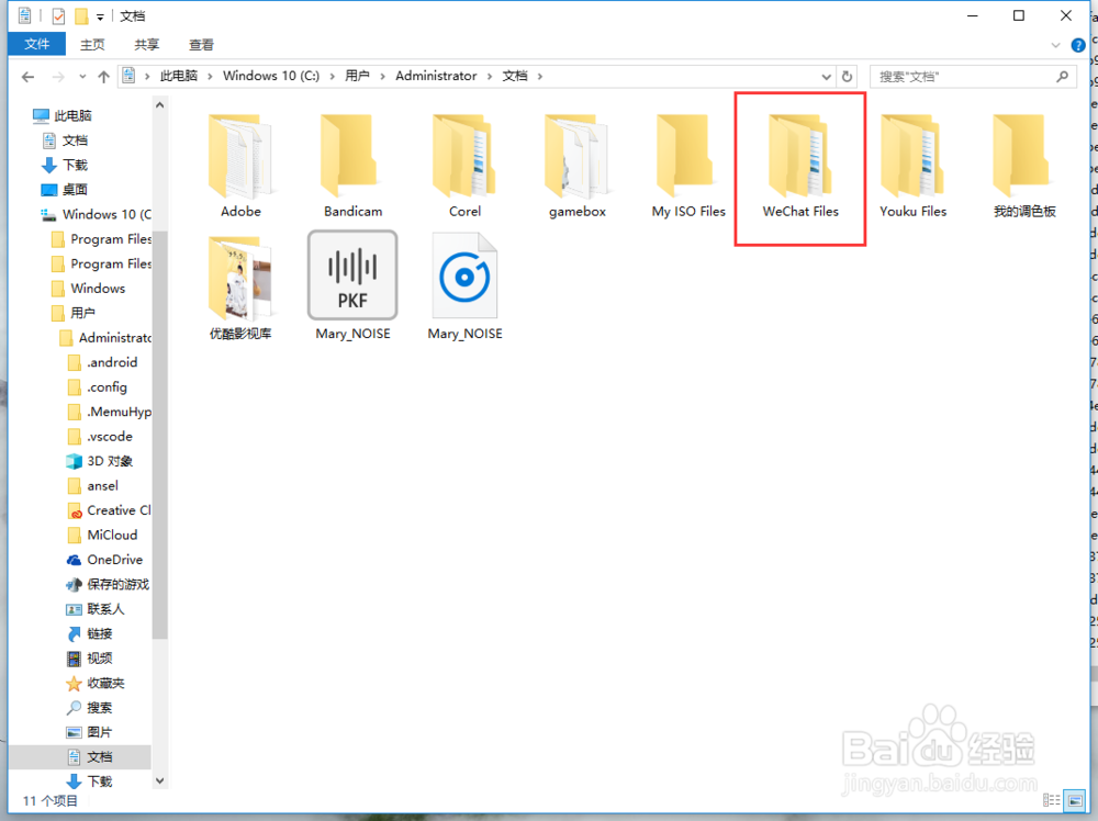在【文檔】文件夾中會(huì)有很多系統(tǒng)默認(rèn)生成的應(yīng)用的文件夾,找到【W(wǎng)echat Files】文件夾,這個(gè)文件夾就是微信電腦端默認(rèn)保存的所有文件的位置,雙擊打開(kāi)【W(wǎng)echat Files】文件夾。