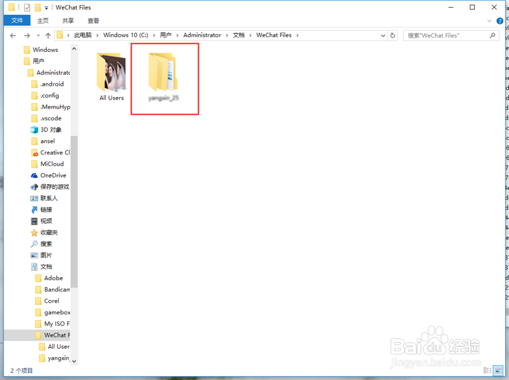 在【W(wǎng)echat Files】中,找到以你微信賬號(hào)命名的文件夾,每個(gè)人的賬號(hào)都是獨(dú)有的噢,我們雙擊打開(kāi)文件夾。