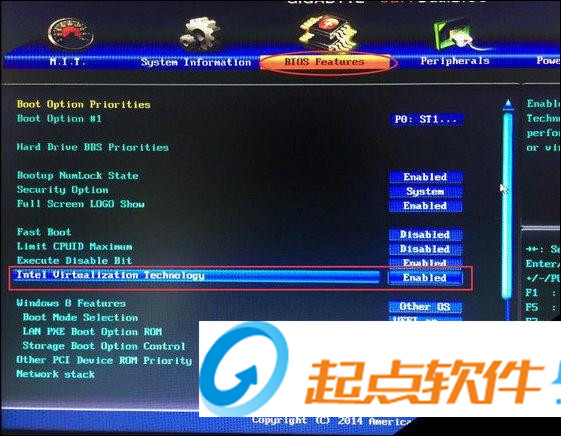 (1)使用方向鍵→,←移動光標到BIOSFeatures選項。