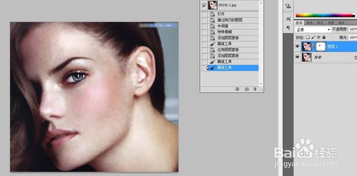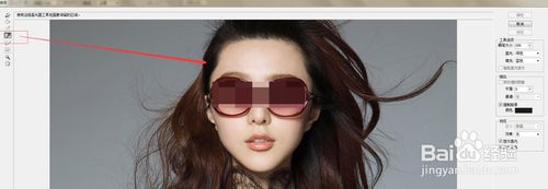 10、涂抹后照片邊緣有所失真,我們可以選擇“仿制圖章工具”進(jìn)行修復(fù),