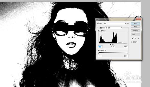 3、調(diào)整色階,讓背景淡化,變成白色,如果背景還是有黑色花,就用白色畫筆擦拭,要想要效果更好,就用加深工具對(duì)圖像進(jìn)行加深