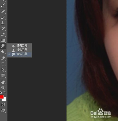 4、現(xiàn)在得到的結(jié)果還不錯(cuò),為了讓效果更自然,大家選擇工具欄的“涂抹工具”。
