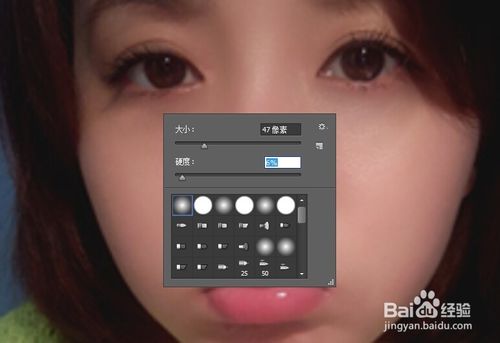 5、選擇畫筆, 較柔的畫筆,硬度為 0,不透明度為 50%