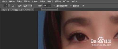 3、修復(fù)畫筆工具需要鍵盤里面的alt鍵進(jìn)行配合,按下鍵盤alt鍵,然后圖標(biāo)會(huì)發(fā)生變化,大家點(diǎn)擊正常的皮膚,就是沒有黑眼圈的皮膚,進(jìn)行取樣,然后在黑眼圈的位置進(jìn)行描畫,不斷的重復(fù),直到把黑眼圈都遮羞掉。