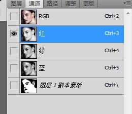2、里面看到了紅,綠,藍(lán),那么我們就要看摳什么,比如,摳頭發(fā),看哪個(gè)圖層合適,選擇綠,就把綠色的圖層復(fù)制一層