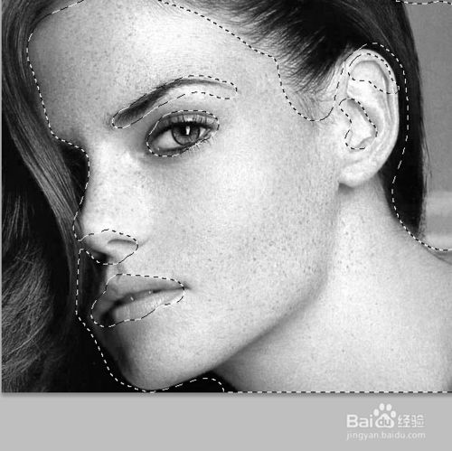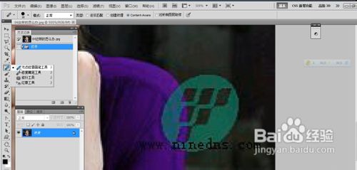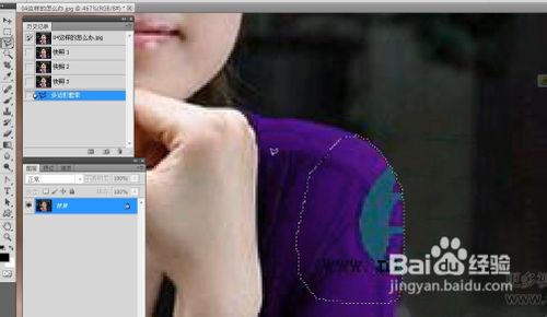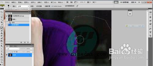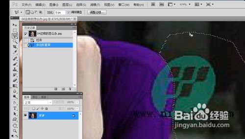 8、同樣使用多邊形套索工具將肩膀的水印選區(qū)做出來