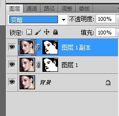 12、將圖層1 副本 混合模式調(diào)為,變暗。