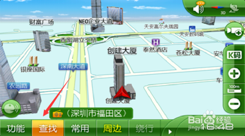 1、打開(kāi)凱立德移動(dòng)導(dǎo)航系統(tǒng),進(jìn)入地圖界面,點(diǎn)擊“查找”。