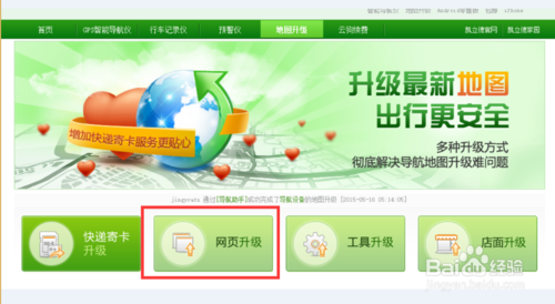待進(jìn)入“凱立德官方網(wǎng)站”后,切換到“地圖升級(jí)”-“網(wǎng)頁(yè)升級(jí)”選項(xiàng)界面。