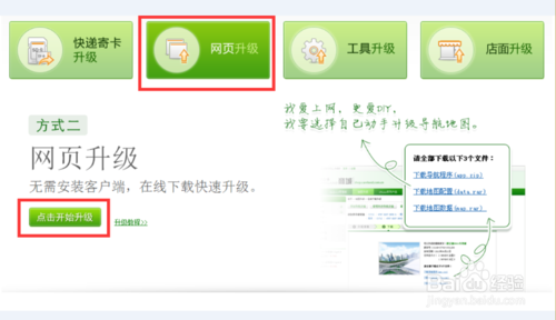 從打開(kāi)的“網(wǎng)頁(yè)升級(jí)”界面中,找到如圖所示的“點(diǎn)擊開(kāi)始升級(jí)”按鈕。