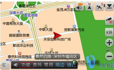 首先,打開(kāi)車載“凱立德導(dǎo)航地圖”,在導(dǎo)航界面中點(diǎn)擊“查找”按鈕,如圖所示: