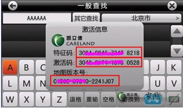 6、填寫(xiě)您剛才記錄的激活碼重新激活。打開(kāi)凱立德導(dǎo)航系統(tǒng),進(jìn)入【功能】->【幫助】->【版本信息】,查看版本信息,顯示為XXXXX-XXXXX-2342J07,您已成功升級(jí)凱立德2019版。