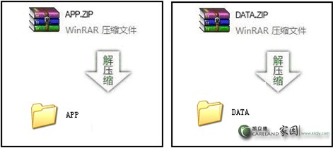 1、將下載到電腦中的【APP.ZIP】和【DATA.ZIP】文件壓縮包分別在電腦上解壓成為【APP】和【DATA】文件夾。