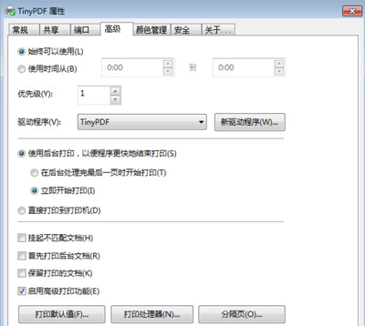 6、在打印機屬性里面的高級里面還有一些人性化的設置,可以根據(jù)自己的喜好進行設置。