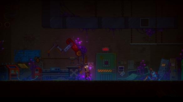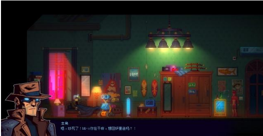再來便是游戲的畫面,也是我非常想點(diǎn)贊的一點(diǎn)。雖然游戲定位是復(fù)古的像素畫風(fēng),但是朋克風(fēng)格十分明顯,光怪陸離之下,很好的烘托了游戲氛圍,與游戲的劇情搭配起來相得益彰。游戲畫面總體看起來十分舒服,雖說是像素風(fēng),但各種場(chǎng)景足夠精致,玩起來,視覺上是非常享受的。