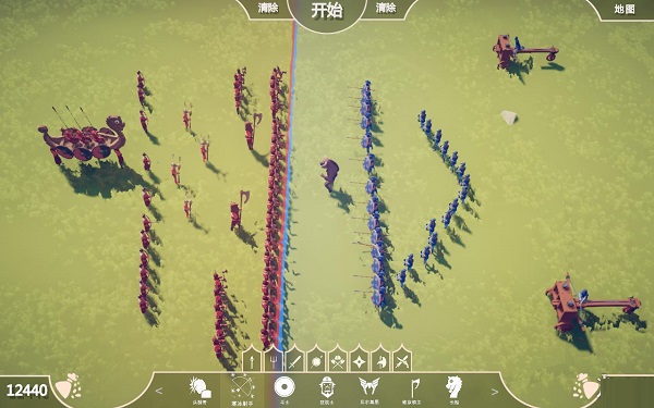 第六關(guān):12盾牌兵,38野蠻人,主要用盾牌兵撞開對(duì)方盾牌兵