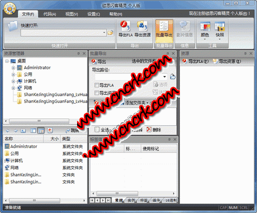 碩思閃客精靈個(gè)人版能捕捉.反編譯.查看和提取shockwave Flash 影片(.swf和.exe支持Fla格式文件),最新版增加“編輯”功能,可以對(duì)SWF影片進(jìn)行修改,替換資源,輕松反編譯一個(gè)或是多個(gè)SWF格式文件為FLA/FLEX項(xiàng)目文件。支持Flash 6, Flash MX 2004, Flash 8, Flash CS3, Flash CS4 and Flash CS5。它能恢復(fù)FLA/FLEX項(xiàng)目文件,并反編譯FLASH的所有元素,包括:矢量圖,聲音,圖片,片段,字體,文本,腳本等。支持動(dòng)作腳本 AS3.0。使用閃客精靈專業(yè)版你可以在任意一個(gè)Flash影片上找到你想找的東西。