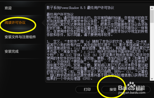 2、點擊安裝程序之后我們下一步會要求接受下協(xié)議,我們點擊接受下一步。