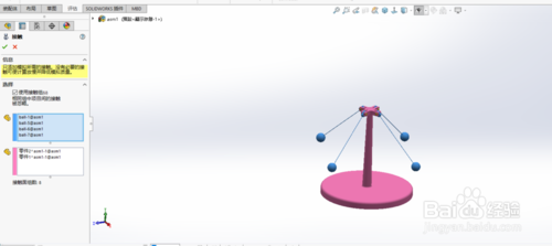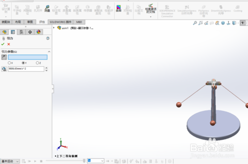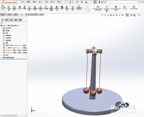 solidworks2019破解版怎么制作離心動(dòng)畫?打開(kāi)solidworks2019,導(dǎo)入實(shí)體模型。底座,支架,連接桿,小球。