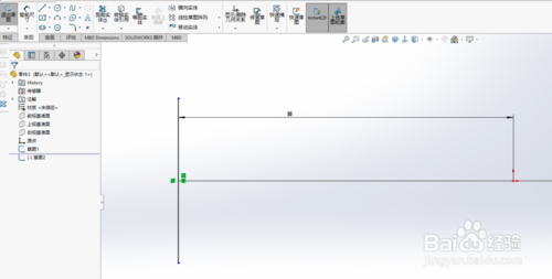 右視基準(zhǔn)面,草繪一條直線,邊長(zhǎng)20。作為輪廓草圖