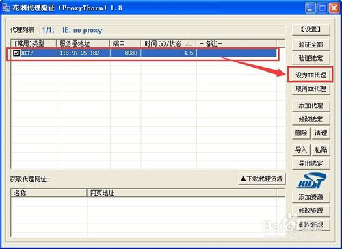 選擇中可以使用的IP,點擊設為ie代理即可。就這樣很簡單的你就成功的換了ip了。