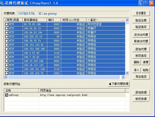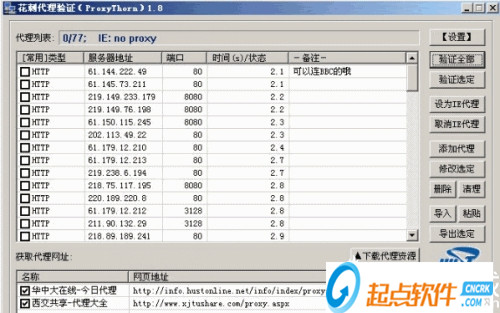 A: 由于絕大多數(shù)人是通過http代理上網(wǎng)的,所以開發(fā)的重點放在了http代理的驗證上。本軟件對http代理的驗證絕對是快速可靠的,對其他協(xié)議的代理的驗證性能一般,以后會改進其他協(xié)議代理的驗證性能。