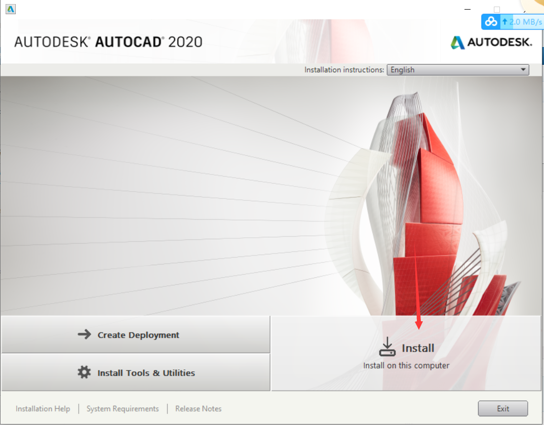 1、本站下載壓縮包,解壓后獲得64位cad2020安裝包和注冊機2、雙擊原版安裝包AutoCAD_2020_English_win_64bit_dlm.sfx.exe運行加載,并解壓