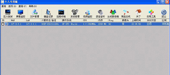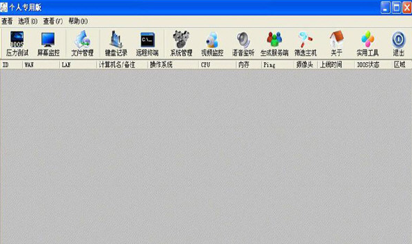 1、專業(yè)管理遠(yuǎn)程電腦屏幕、攝像頭、麥克風(fēng),音質(zhì)好,彩色圖像流暢,功能豐富...2、操作遠(yuǎn)程電腦鍵盤、鼠標(biāo)、鍵盤記錄,鎖定,彈網(wǎng)頁、進(jìn)程管理、關(guān)機(jī)、重啟...