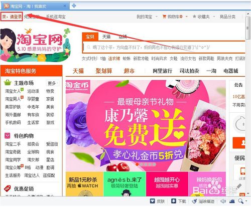 首先我們打開淘寶網(wǎng),然后點擊左上角的“親,請登錄” 如圖