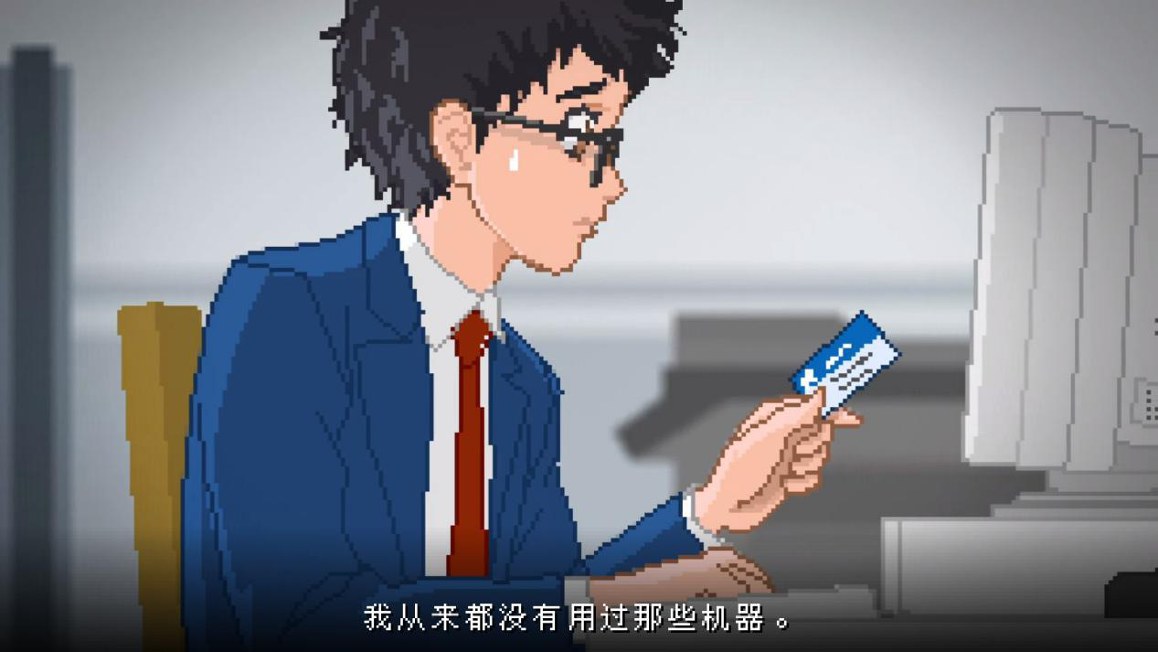 實(shí)景拍攝、日系動畫、16bit像素風(fēng)在精心設(shè)計(jì)的劇本內(nèi)依靠主線推進(jìn)相互穿插,在劇情邏輯上自洽又突兀,劇情氛圍上奇妙的平衡讓玩家很容易模糊了現(xiàn)實(shí)與虛擬的界限,將自己帶入其中。而主角作為烏托邦制度下的“社畜”,其見聞也足以讓正在工作的大齡玩家們產(chǎn)生一些有模有樣的思考與共鳴。