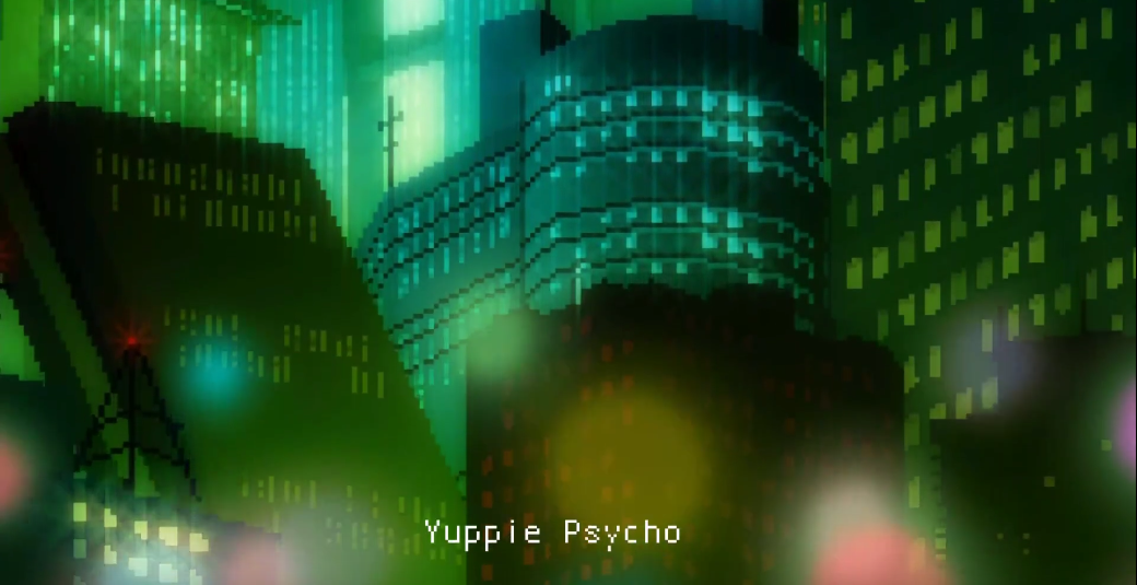 《雅皮士精神》是一款十分精致的像素風(fēng)游戲,它有著完全不同于游戲場景——輪廓清晰的過場動畫,以及完美的音效與契合游戲氛圍的配樂。單從游戲場景來看,可能只是一個(gè)沒什么特別的像素風(fēng)游戲,但搭配上高水平的動態(tài)過場,就在人設(shè)形象及劇情氛圍上重重的點(diǎn)了一筆,營造出更豐滿的劇情架構(gòu)。游戲中的一些“影像”甚至采用了真人短片,與點(diǎn)陣像素風(fēng)的游戲畫面形成了鮮明對比,詭異而神經(jīng)。