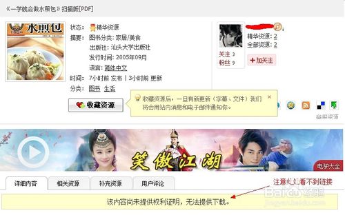 a、可以打開電驢verycd網(wǎng)站,找到自己要下載的資源或資料,打開新的網(wǎng)頁,可以看到提示該內(nèi)容尚未提供權(quán)利證明,無法提供下載。
