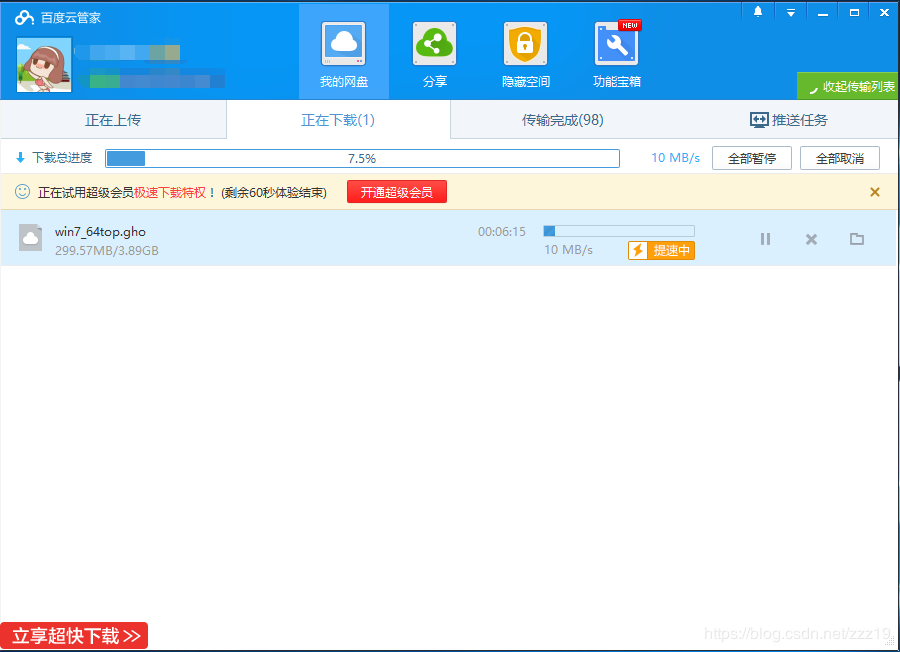 1)百度網(wǎng)盤會員使用網(wǎng)盤PC客戶端進(jìn)行大文件上傳時,單文件最高達(dá)到10G;