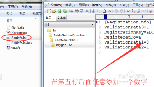4、然后它會生成注冊信息文件RegInfo.ini,使用editplus之類的文本編輯器打開它,在第5行