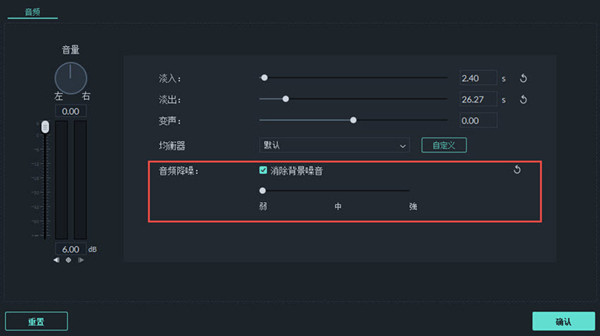 3、將滑塊拖動到需降噪的級別(弱,中或強)。