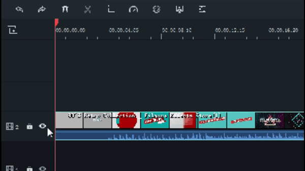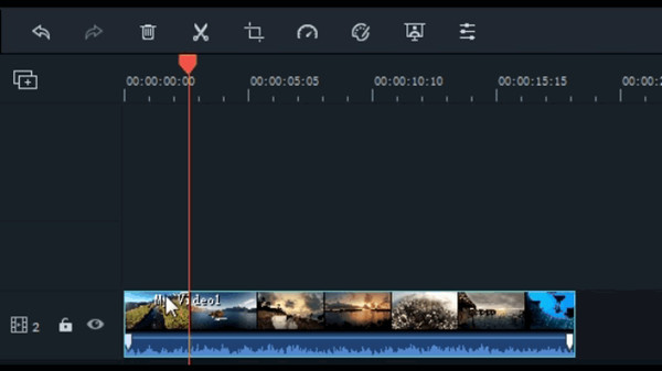2、如果您需要剪切視頻片段中間的部分,將游標(biāo)拖到不需要的部分的起始點,然后按剪刀圖標(biāo)將片段分割,然后將游標(biāo)拖到不需要的部分的末尾并再次按剪刀圖標(biāo),選擇這部分并按刪除圖標(biāo)將其刪除。
